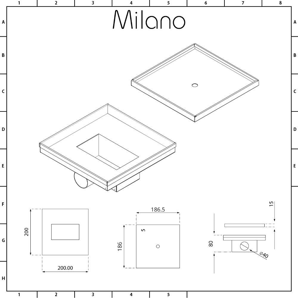 The Milano 200mm square tile insert stainless steel shower drain will provide a seamless finish to your wetroom. This tile insert shower drain has been made from 304 grade stainless steel so you can be assured of quality and durability. It features a horizontal outlet with plastic siphon.