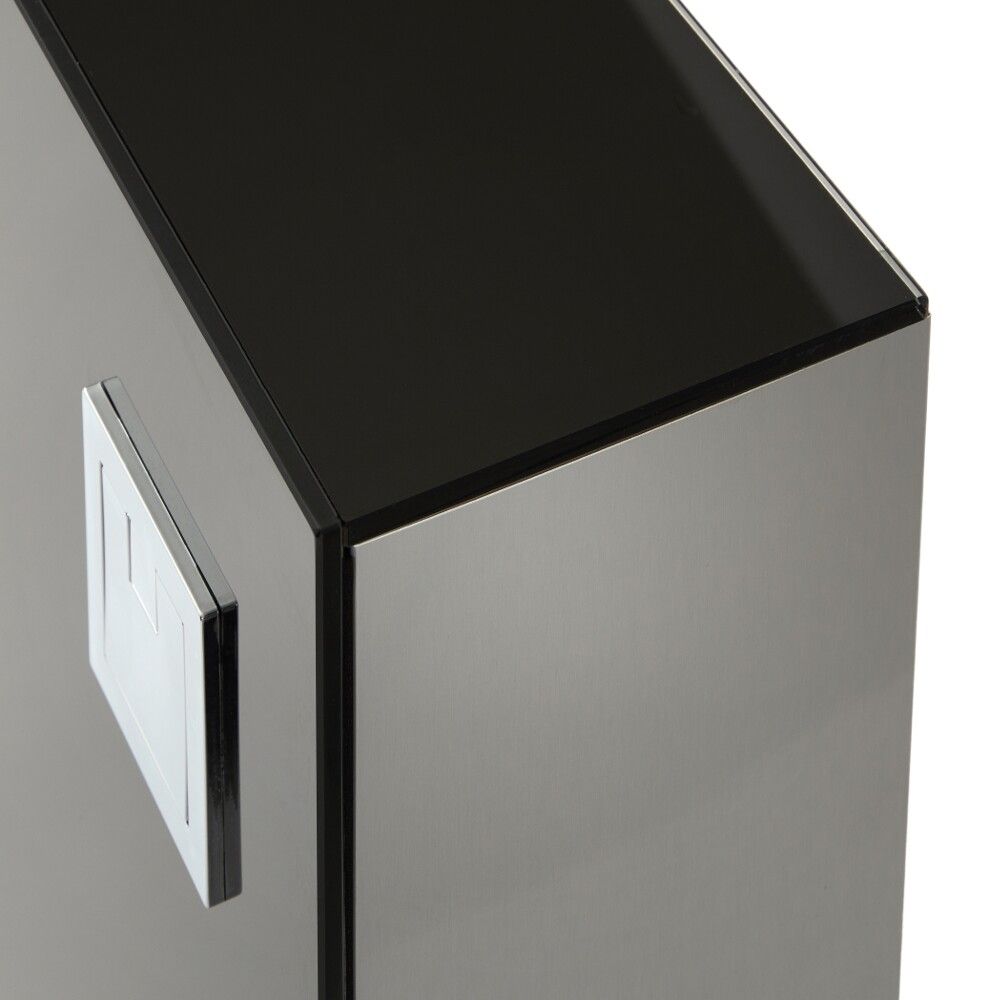 The WC unit features black tempered glass panels and clean lines for a look that’s super-sleek and contemporary. The unit houses a water-saving HDPE dual flush cistern, which is operated with the chrome effect push button.