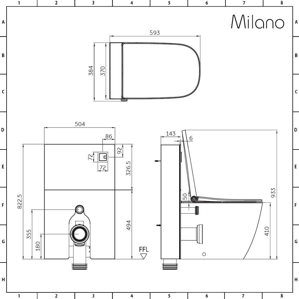 - WC Unit Dimensions: W 504mm x D 143mm x H 822mm