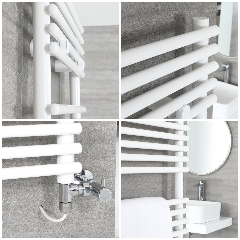 Supplied with chrome valves, IP64 rated heating element and a dual fuel t-piece, this heated towel rail is sure to bring a designer touch to your bathroom or cloakroom. It features a resilient white powder coated finish that complements any bathroom colour scheme and a premium quality steel construction for long-lasting durability.
