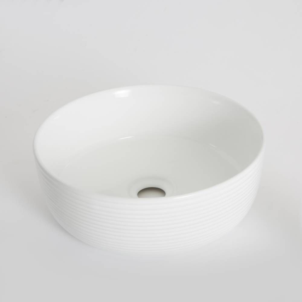 Milano Art - White Modern Ribbed Edge Round Countertop Basin - 360mm (No Tap-Holes)