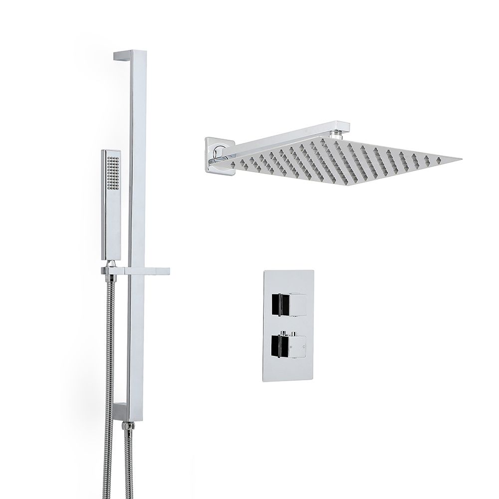 Create a contemporary look and shower in style with the Milano Arvo thermostatic shower mixer set, complete with twin diverter valve, 300mm square shower head and riser rail kit.
