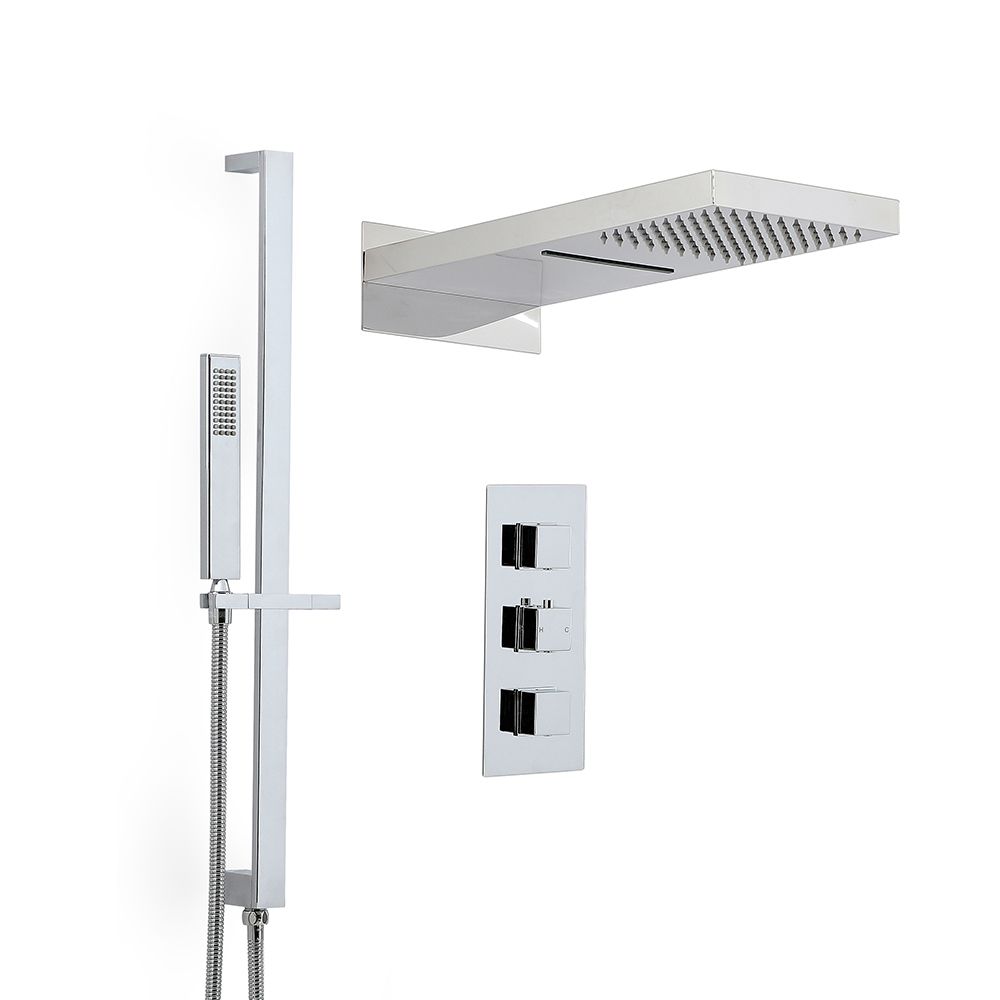 Give your bathroom an upgrade and shower in style with the Milano Arvo thermostatic shower mixer set, complete with triple diverter valve, waterblade shower head and riser rail kit.