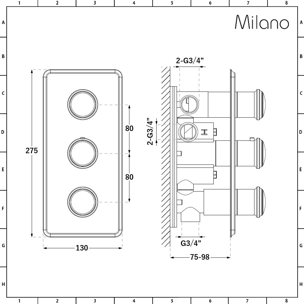 - Milano Ashurst - Triple Thermostatic Diverter Shower Valve