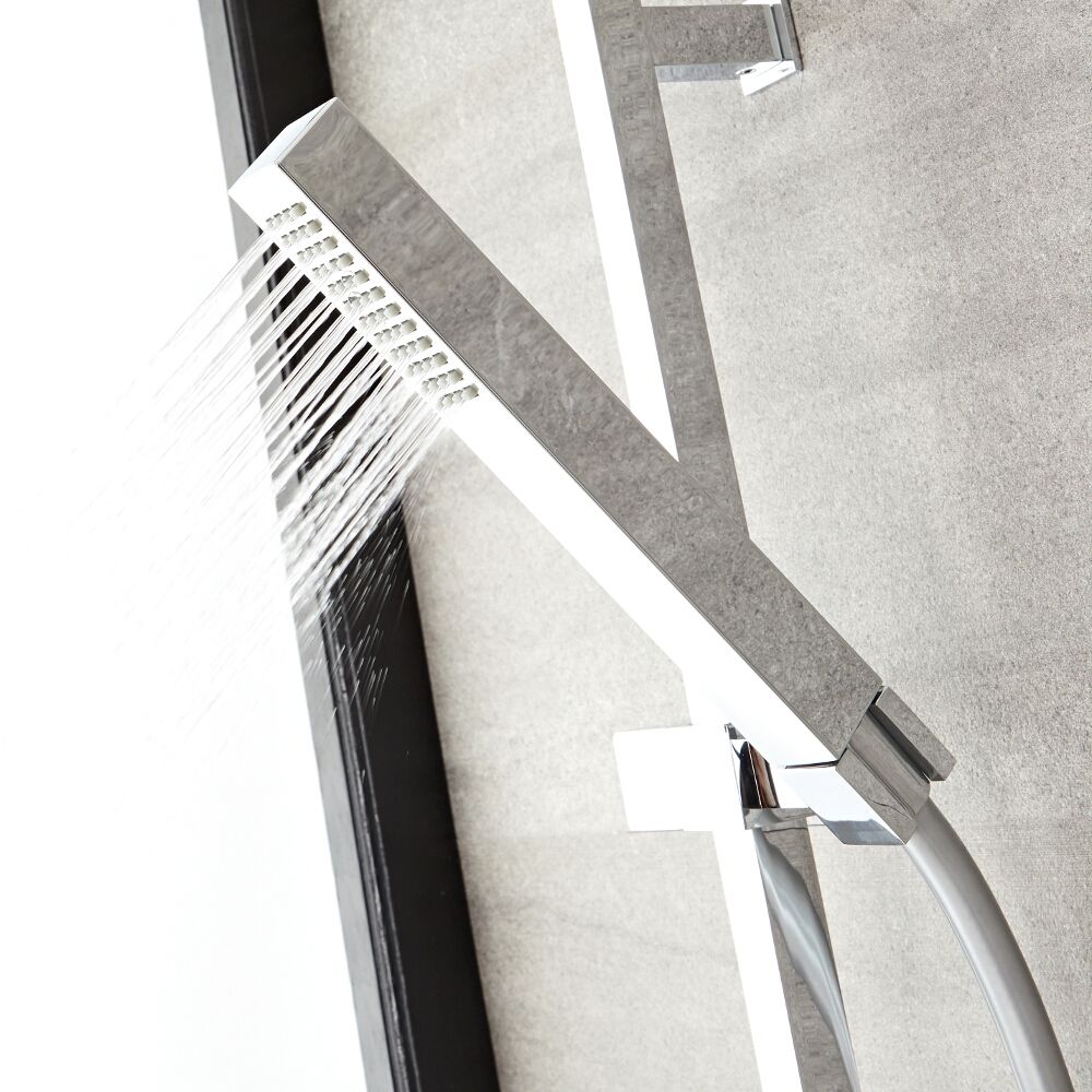 The square shower head, complete with brass wall arm, delivers a refreshing rainfall effect. Both the shower head and hand shower feature silicone nozzles for the quick and easy removal of any limescale deposits.