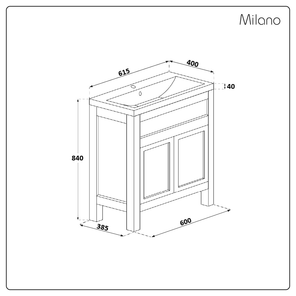 - Basin Dimensions: W 615mm x D 400mm x H 40mm