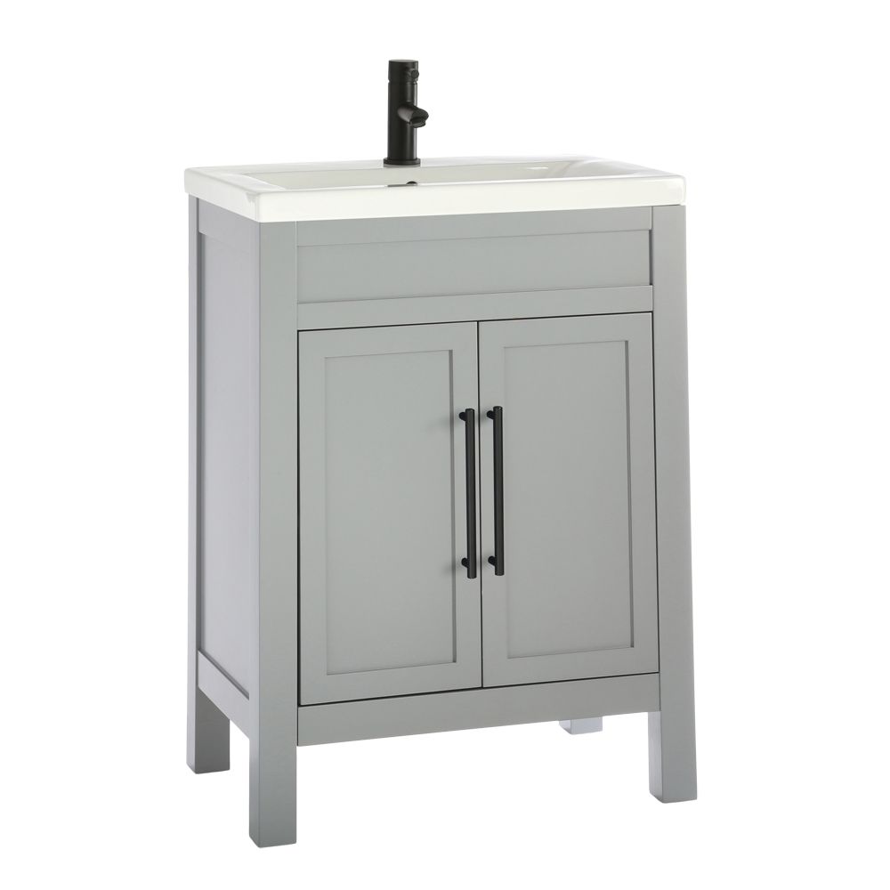 The light grey vanity unit is a stylish and practical storage solution for your bathroom. The included ceramic basin has a hard-wearing white glaze that's easy to clean and a single tap-hole that's perfect for use with one of our mono basin taps.