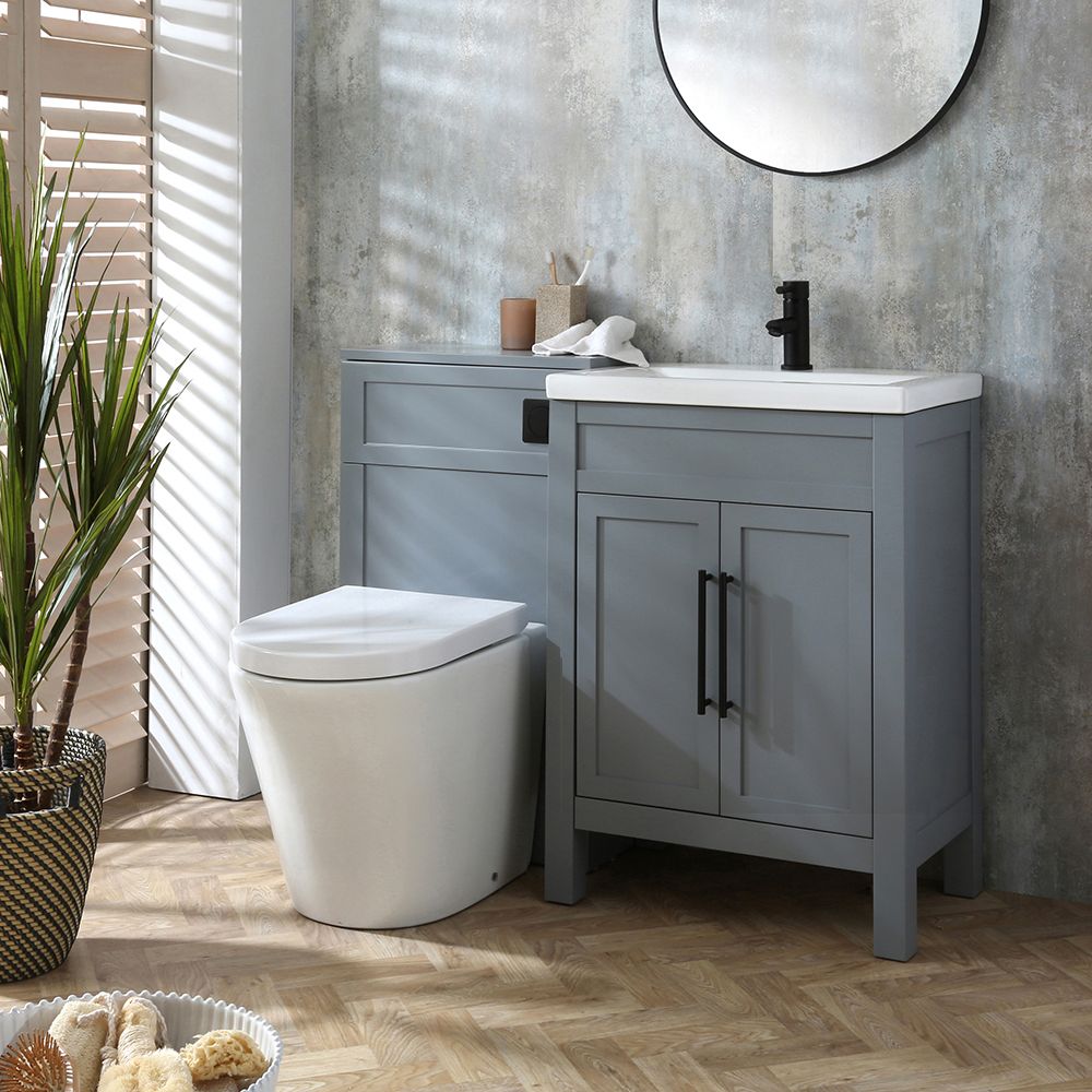 The Milano Aston 600mm light grey vanity unit and WC unit, complete with toilet and water-saving dual flush cistern, will bring elegant style to your bathroom.