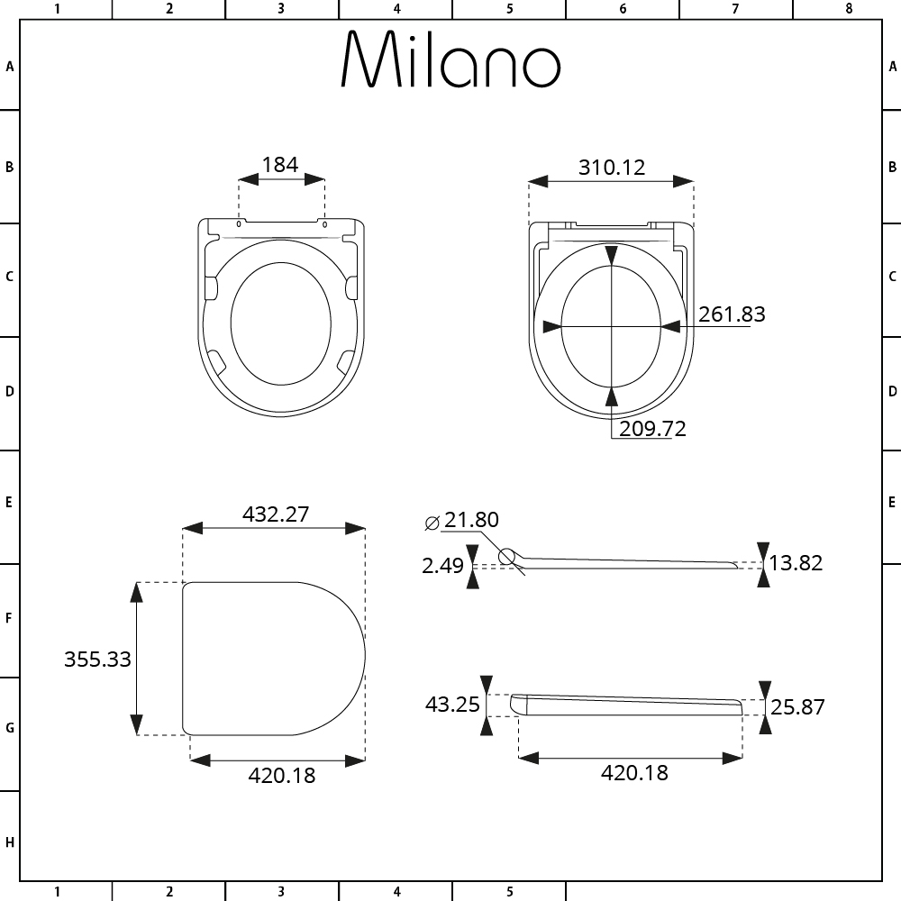 - Toilet Dimensions: W 370mm x D 650mm x H 820mm
