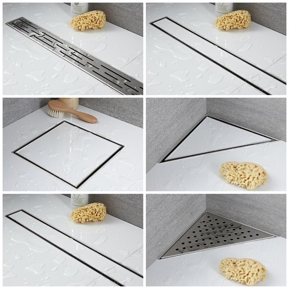- Fast-flow stainless steel shower drain in a choice of styles