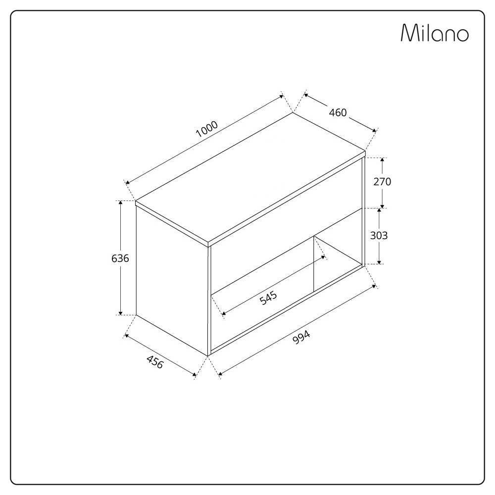 - Unit Dimensions: W 1000mm x D 460mm x H 636mm