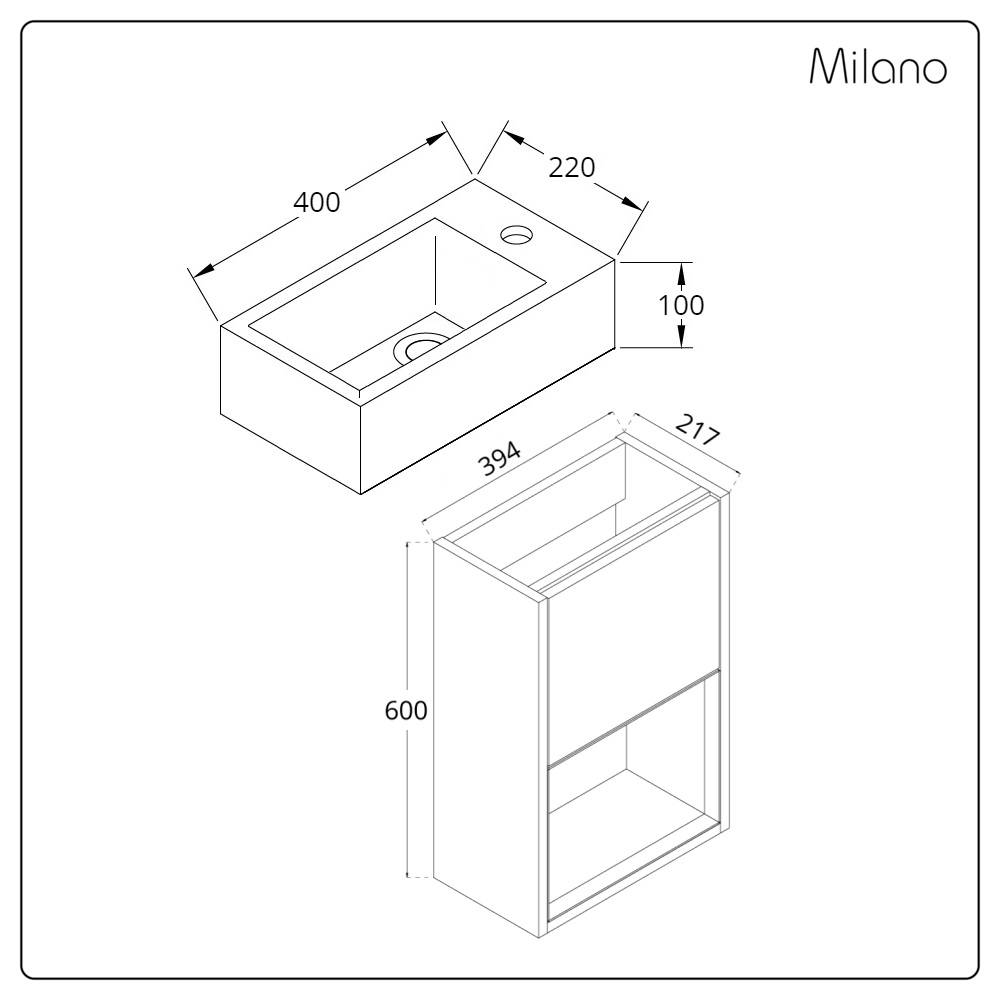 - Basin Dimensions: W 400mm x D 220mm x H 100mm