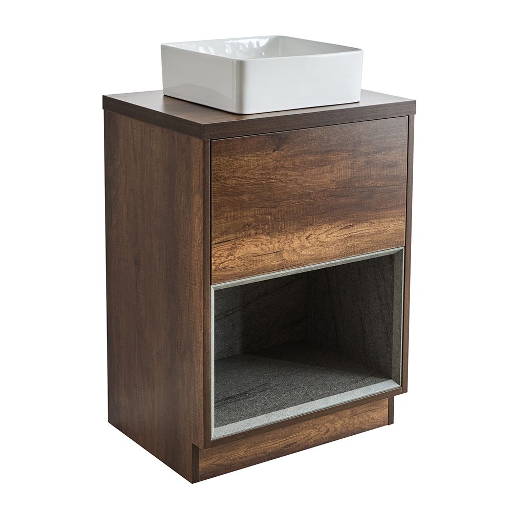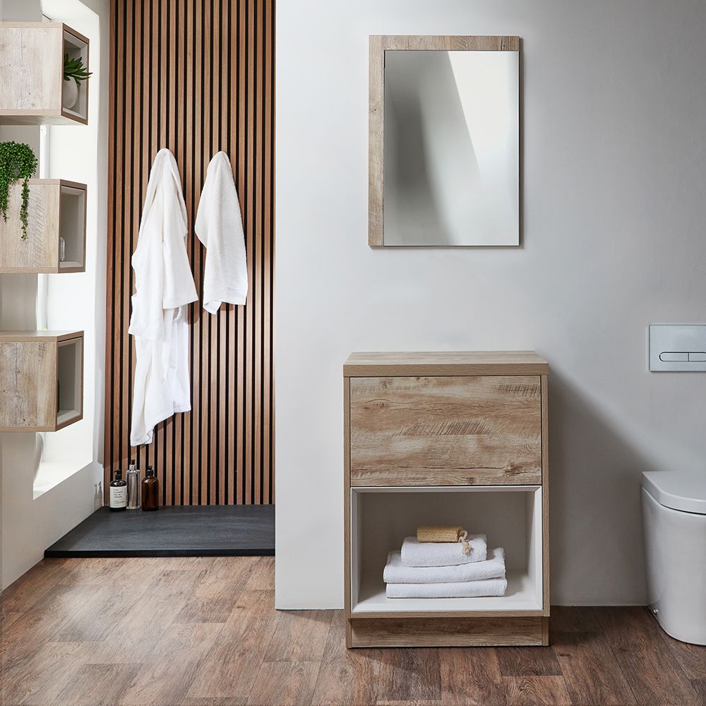 Bring a boutique hotel feel to your bathroom with the Milano Bexley 600mm open shelf vanity unit.