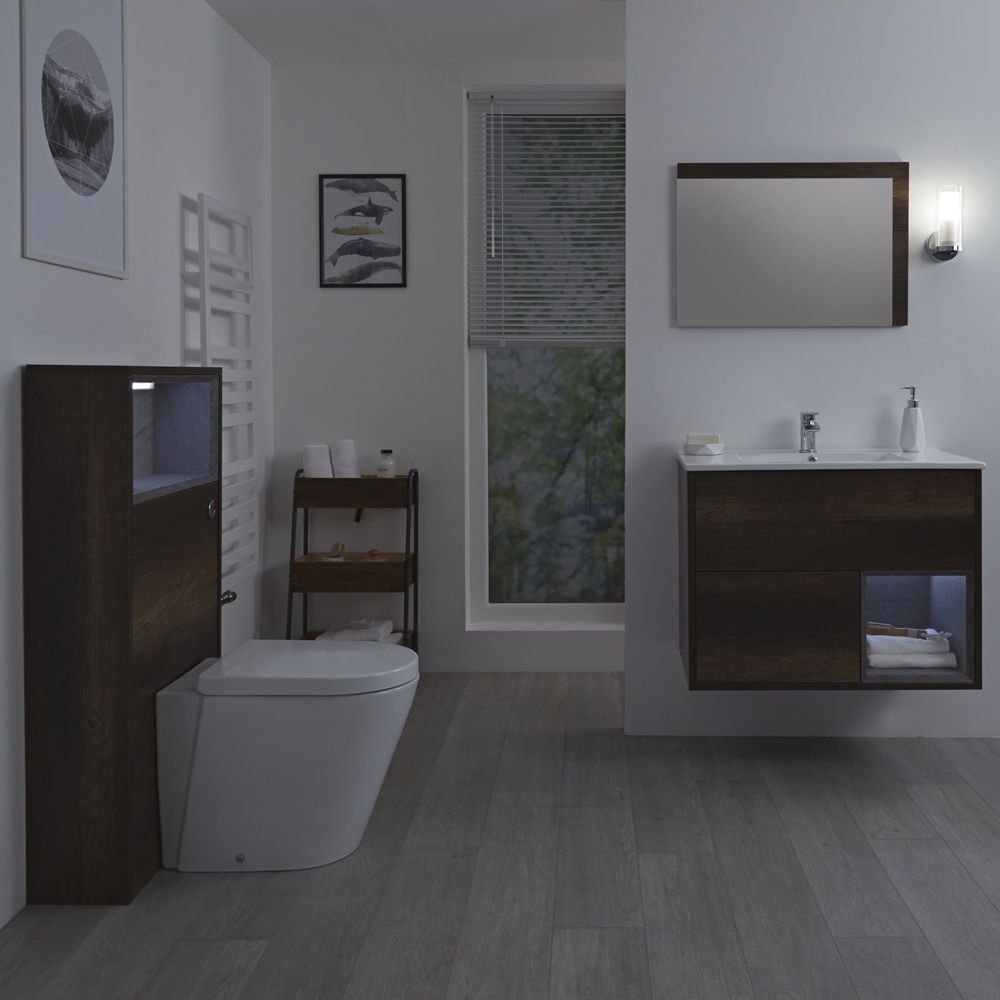 Milano Bexley - Dark Oak Modern 800mm Vanity Unit with WC Unit and Rivington Back to Wall Pan