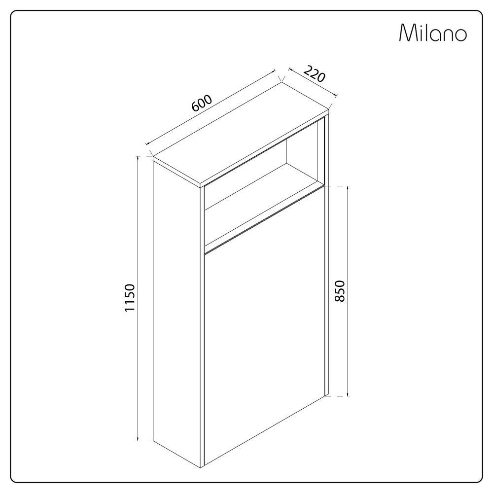 - Unit Dimensions: W 600mm x D 220mm x H 1150mm