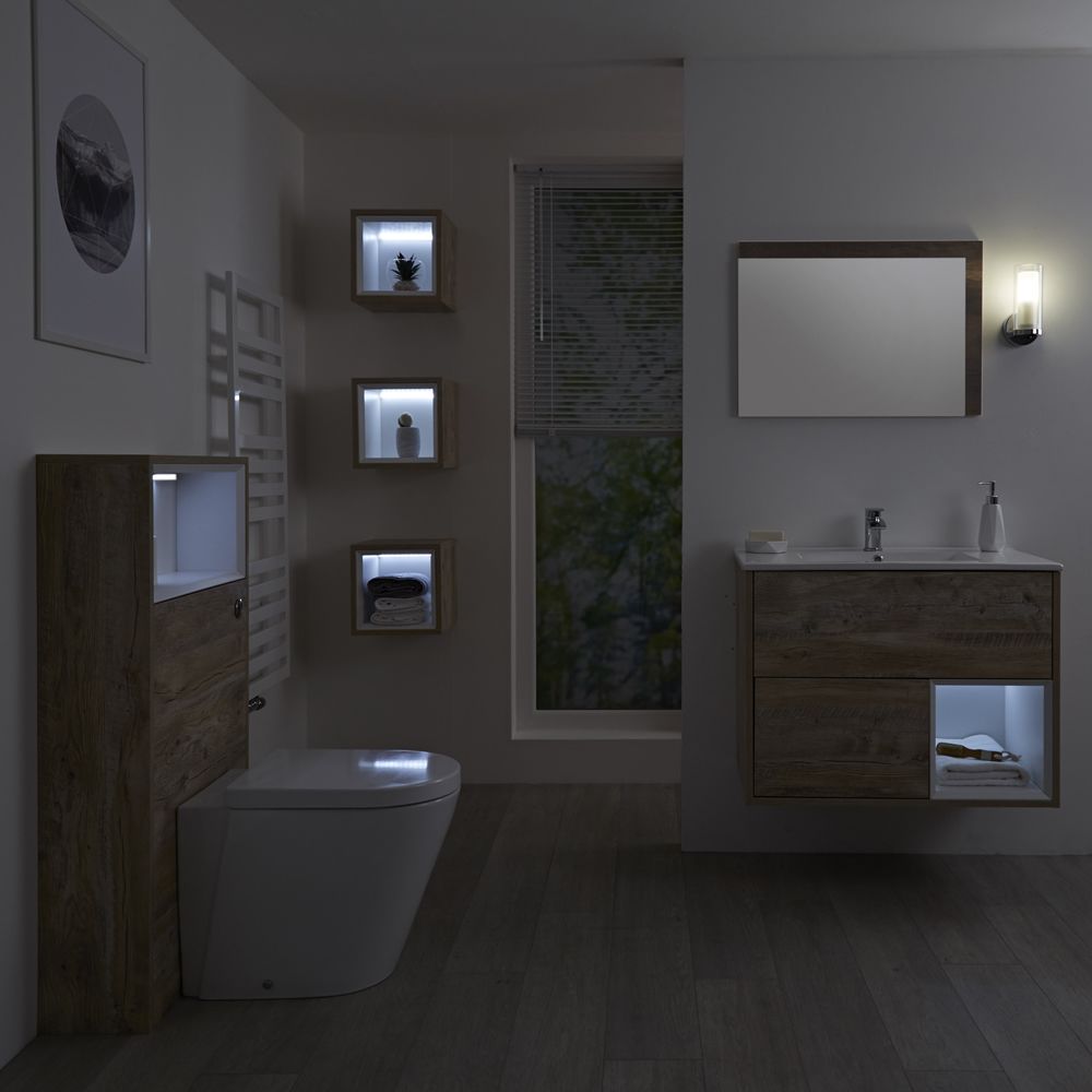 The units are available with and without the option of an LED light. The LED light fits neatly in the open shelf, creating a stylish feature and illuminating toiletries or decorative objects.
