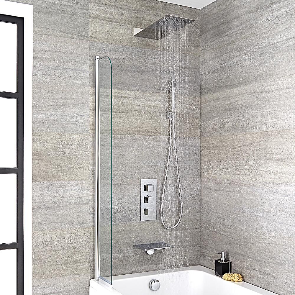 Milano Blade - Chrome Thermostatic Shower with Shower Head, Hand Shower and Bath Filler (3 Outlet)