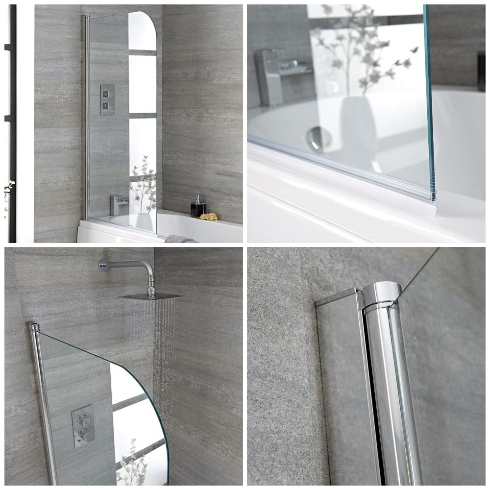 Add the stylish finishing touches to your bath and protect your bathroom floor from spills and splashes with the Milano curved top bath shower screen.