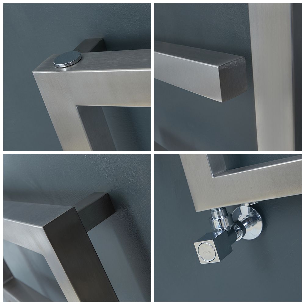 Milano Eclipse - Satin Stainless Steel Designer Heated Towel Rail - 880mm x 500mm