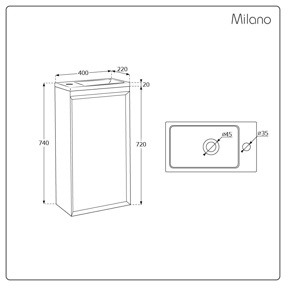 - Basin Dimensions: W 400mm x D 220mm x H 20mm