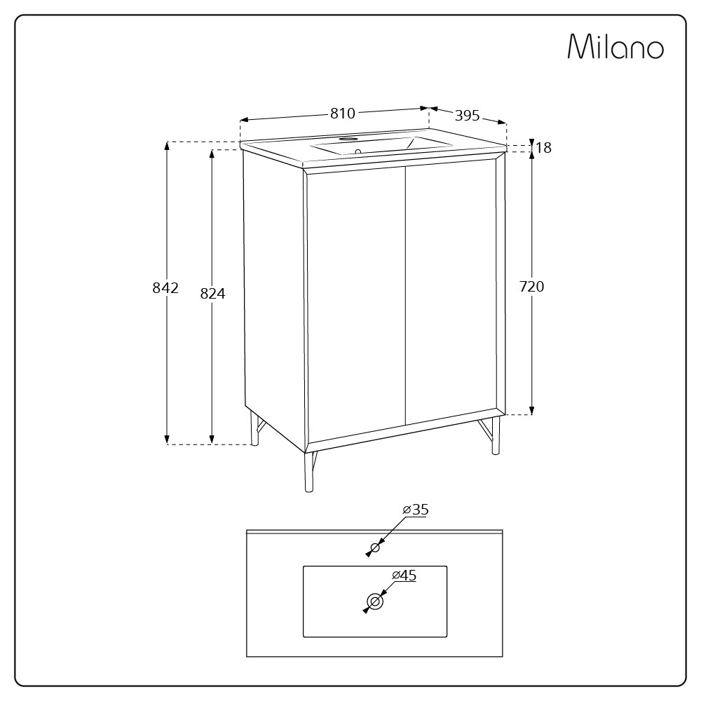 - Basin Dimensions: W 810mm x D 395mm x H 18mm