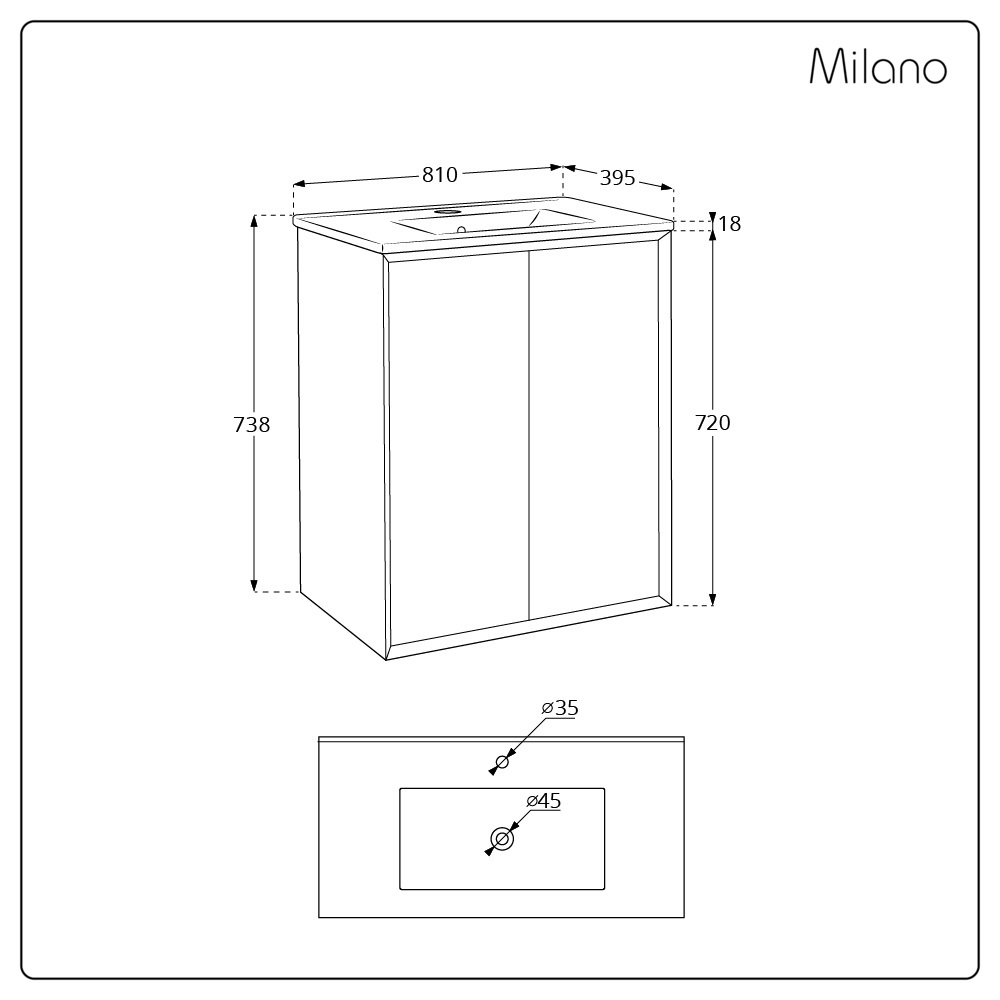- Basin Dimensions: W 810mm x D 395mm x H 18mm