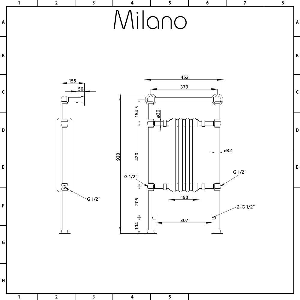 Pipe Centres (mm) Pipe centres refers to the distance needed between the two central heating pipes that connect to the valves - this is an approximate measurement and can differ slightly depending on the valves used.