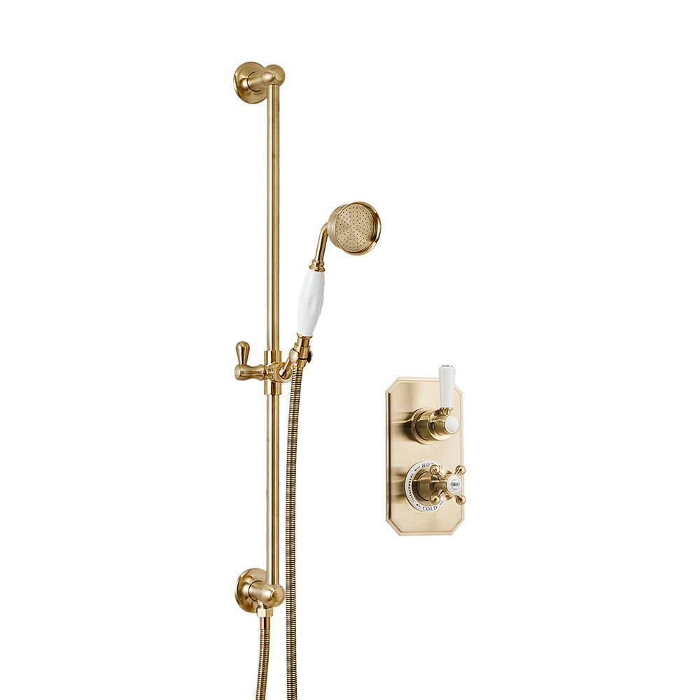 Milano Elizabeth - Brushed Brass Traditional Thermostatic Shower with Round Hand Shower and Riser Rail (1 Outlet)