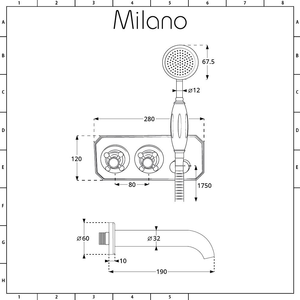 - Milano Elizabeth - Hand Shower with 1.75m Hose and Outlet Elbow with Bracket