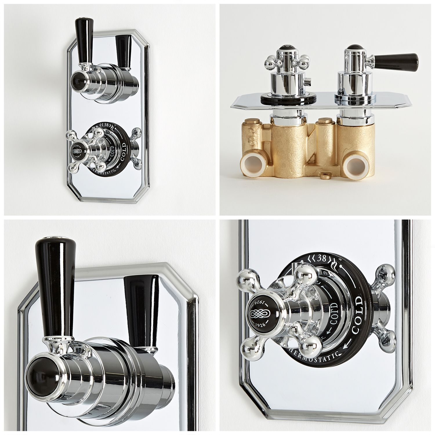 The beautifully designed thermostatic mixer shower valve has been crafted from solid brass with a durable chrome finish that complements any décor. The black ceramic details add a stylish vintage touch. Providing effortless control, the valve incorporates anti-scald technology for peace of mind.