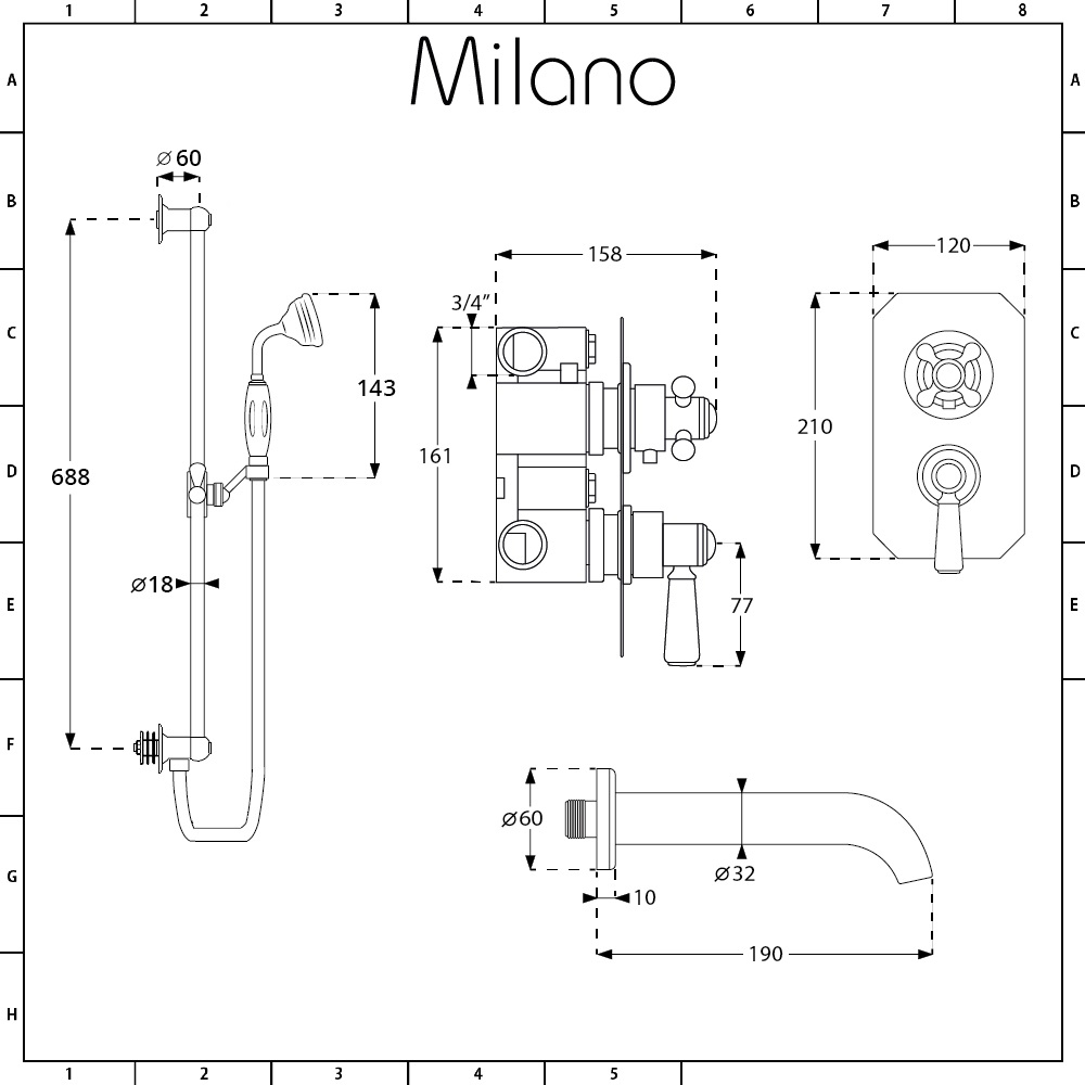 Bring vintage style to your bathroom with the beautifully designed Milano Elizabeth traditional thermostatic shower set, complete with shower diverter valve, riser rail kit and wall-mounted bath spout.