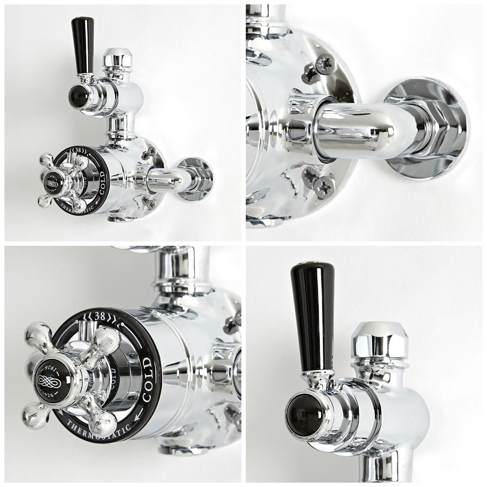 Bring elegance and traditional style to your bathroom with the Milano Elizabeth twin exposed thermostatic shower valve and rigid riser shower kit.