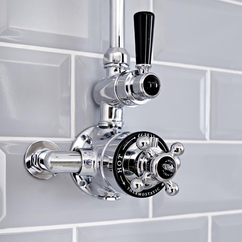 Milano Elizabeth - Chrome and Black Traditional Twin Exposed Thermostatic Shower with Round Shower Head and Rigid Riser Rail (1 Outlet)