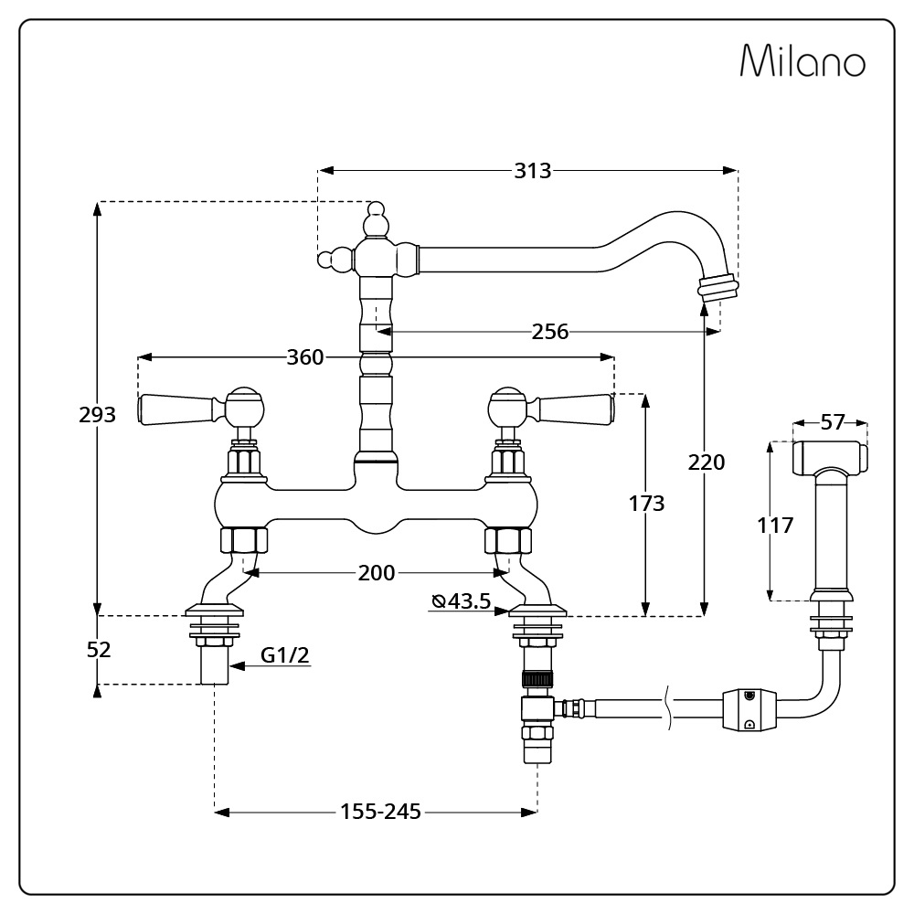 Milano Elizabeth - Classic Cranked Bridge Kitchen Mixer Tap with Pull-Out Spray - Choice of Finish
