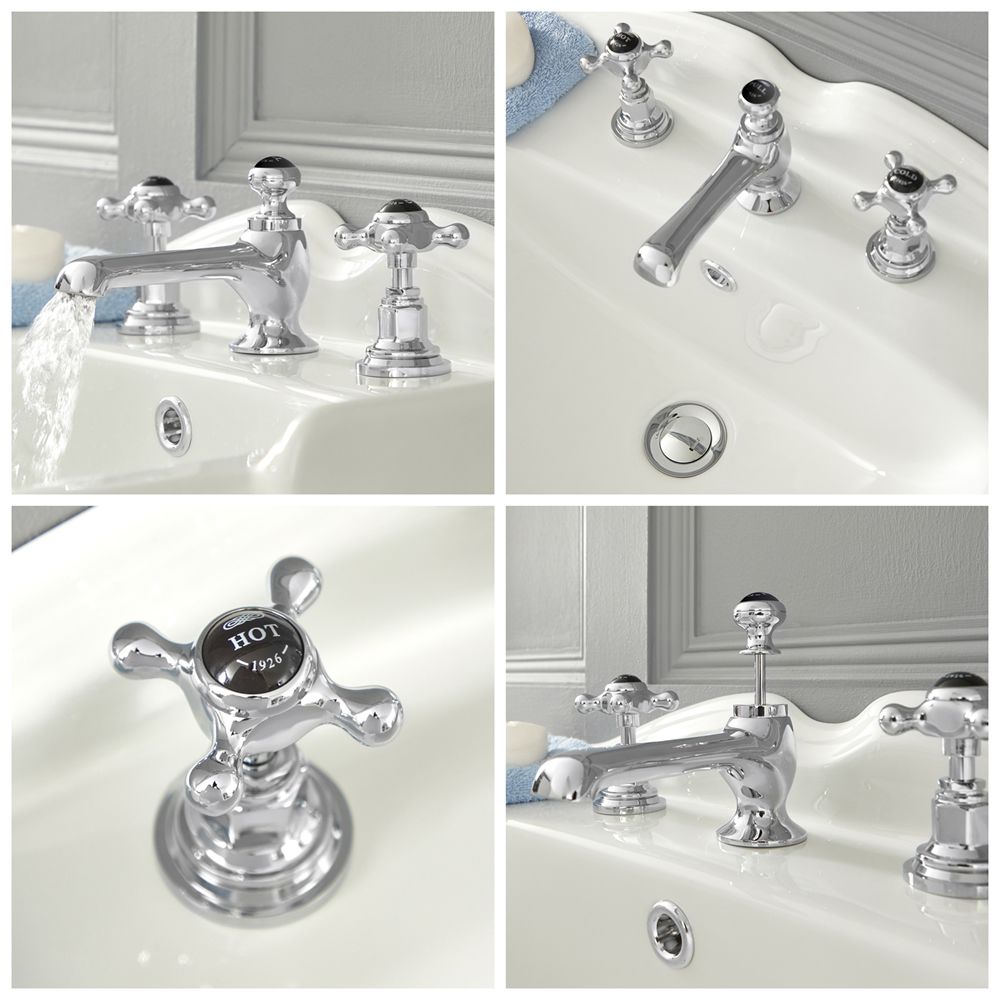 Milano Elizabeth - Traditional 3 Tap-Hole Crosshead Basin Mixer Tap - Chrome and Black