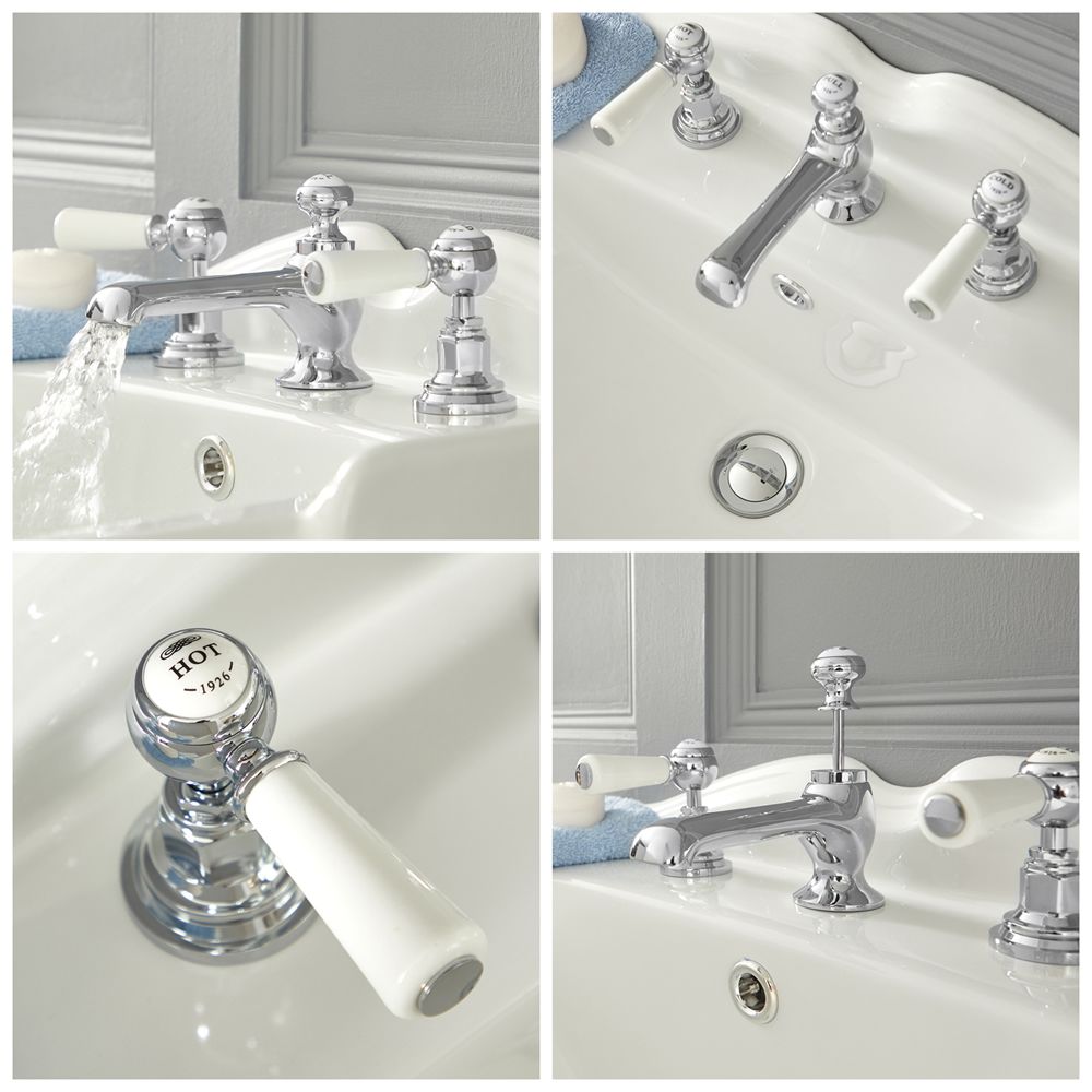 Milano Elizabeth - Traditional 3 Tap-Hole Lever Basin Mixer Tap - Chrome and White