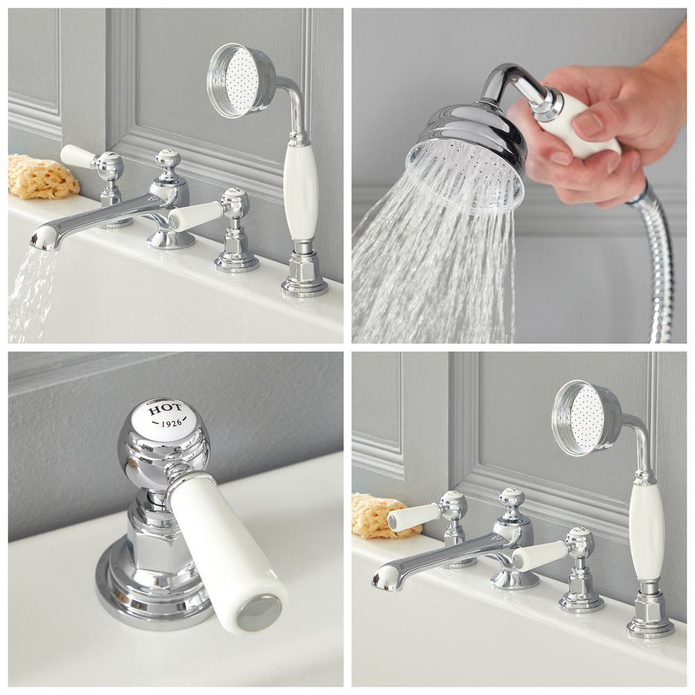 Milano Elizabeth - Traditional 4 Tap-Hole Lever Bath Shower Mixer Tap - Chrome and White
