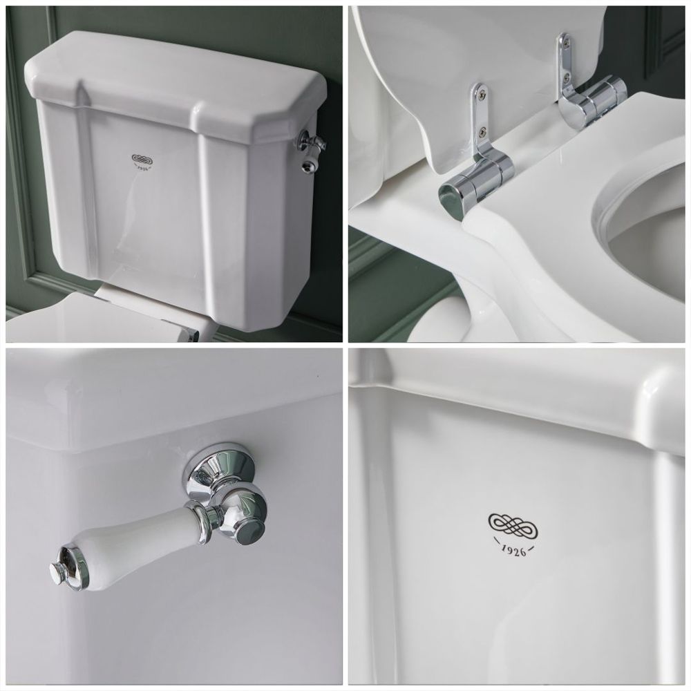 Create your perfect vintage bathroom with the Milano Elizabeth traditional close coupled toilet, complete with cistern and soft close seat.