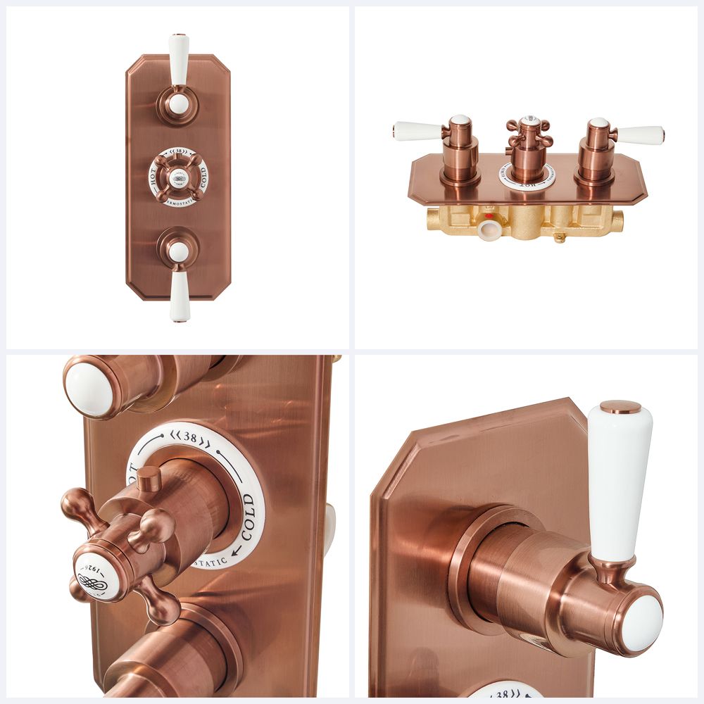 Milano Elizabeth - Traditional Concealed Thermostatic Triple Shower Valve - Brushed Copper