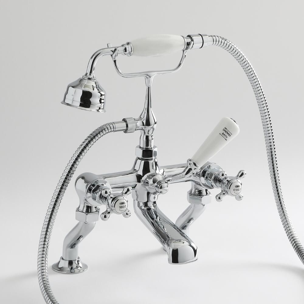 Milano Elizabeth - Traditional Crosshead Bath Shower Mixer Tap - Chrome and White
