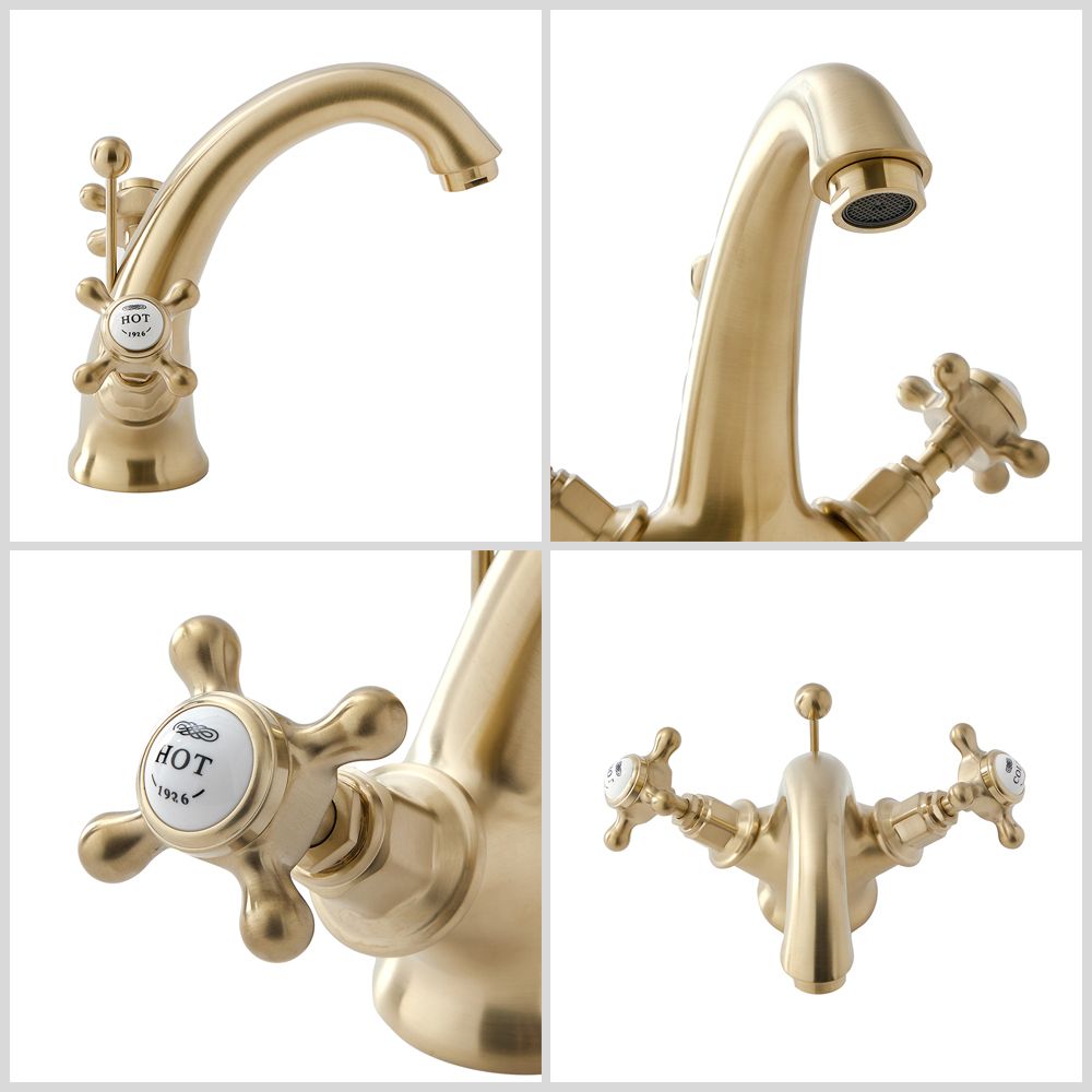 Milano Elizabeth - Traditional Crosshead Mono Basin Mixer Tap - Brushed Brass