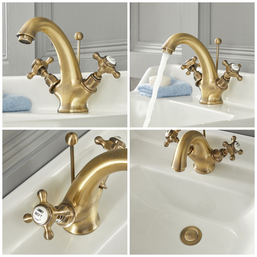 Milano Elizabeth - Traditional Crosshead Mono Basin Mixer Tap - Brushed Gold