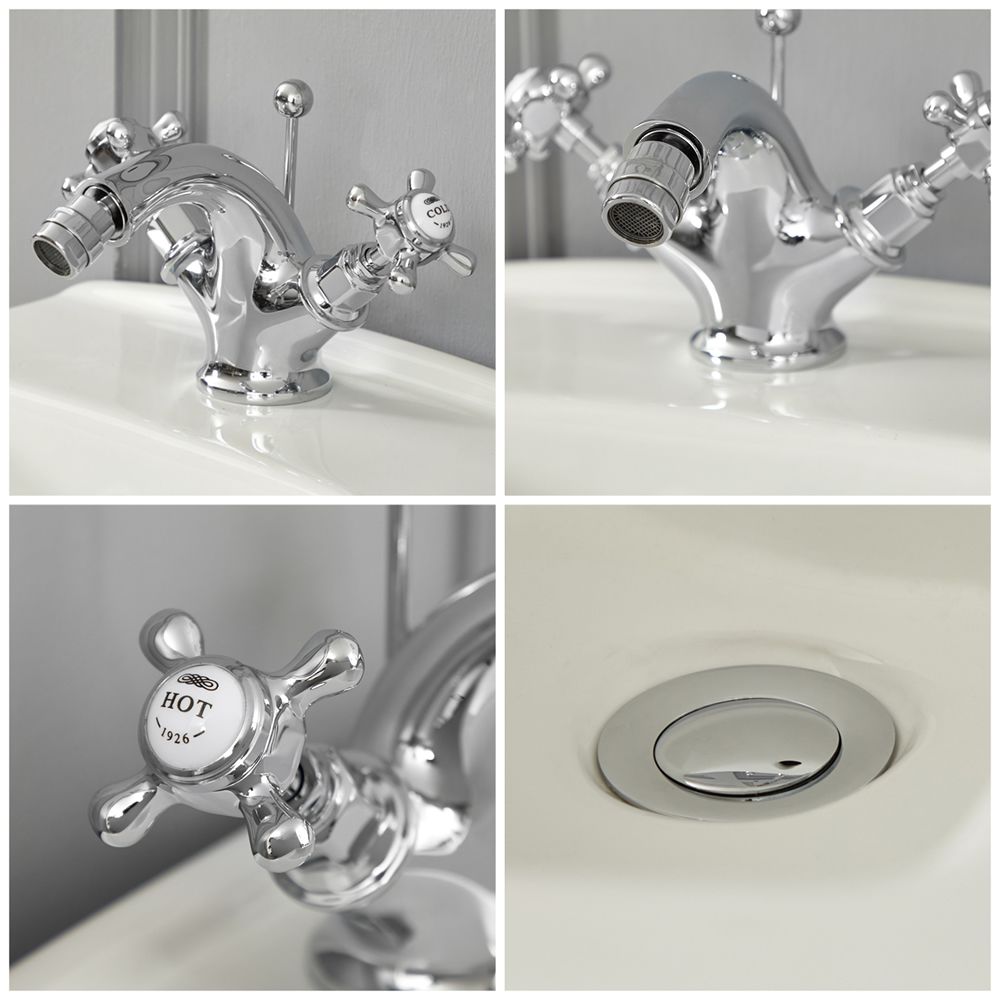Milano Elizabeth - Traditional Crosshead Mono Bidet Mixer Tap - Chrome and White