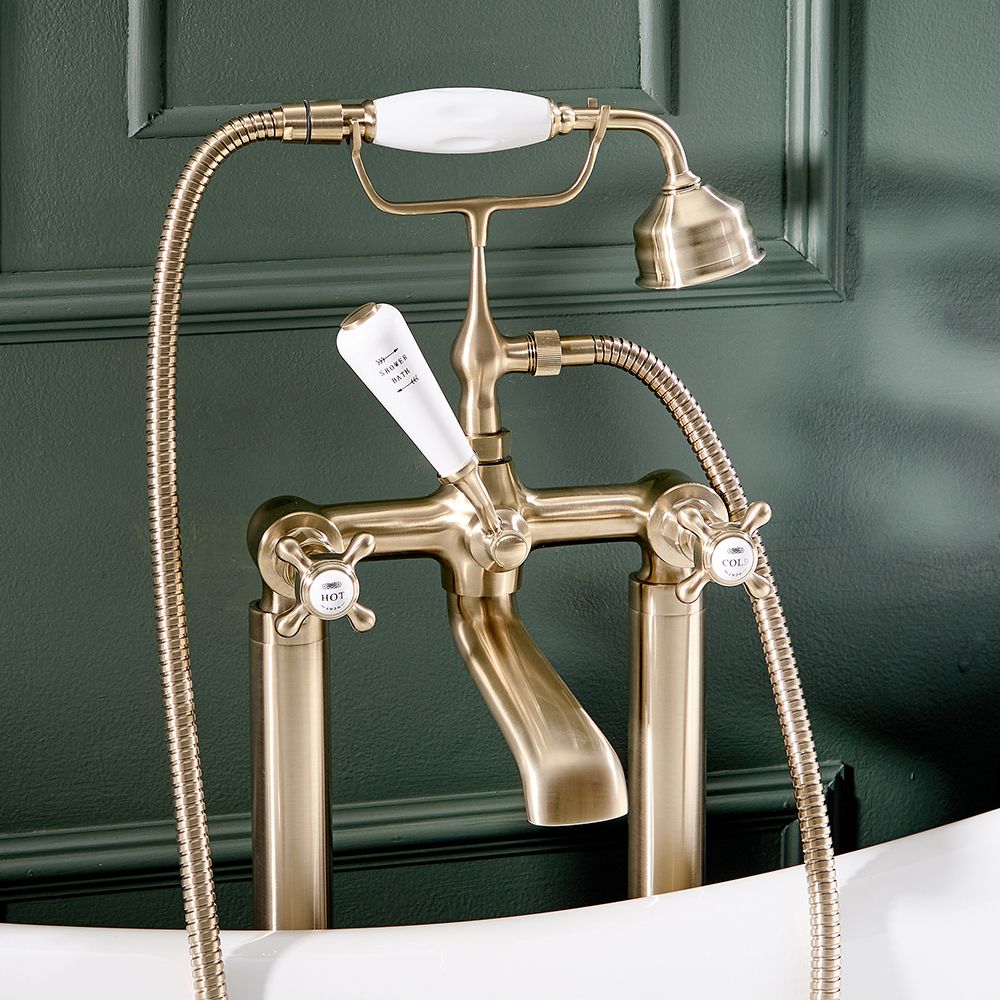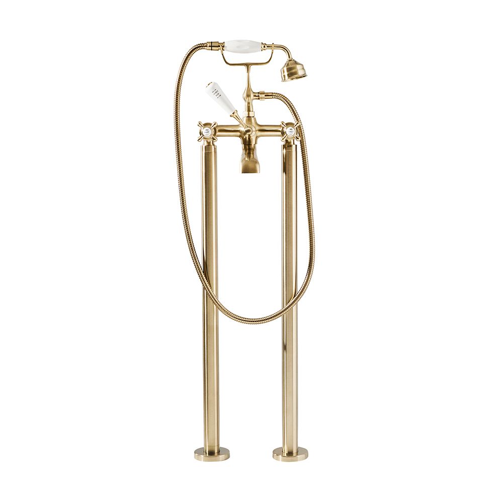 Milano Elizabeth - Traditional Freestanding Crosshead Bath Shower Mixer Tap with Hand Shower - Brushed Brass
