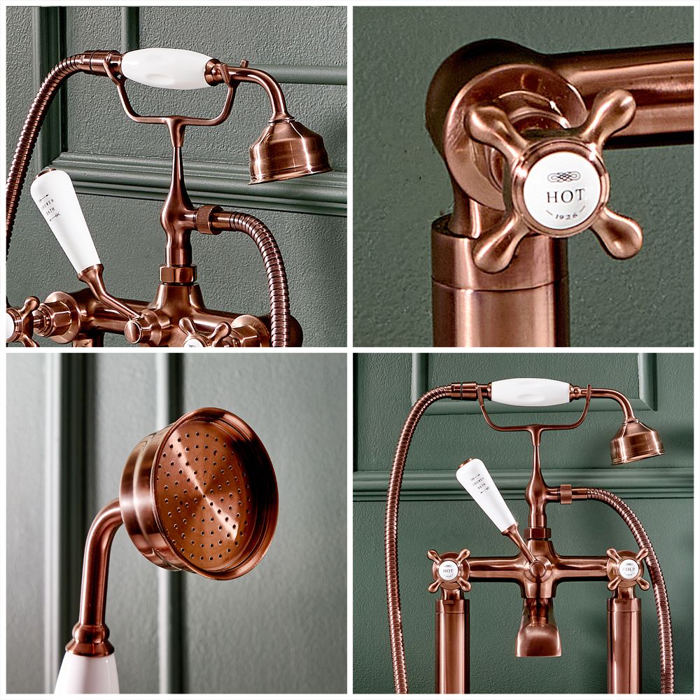 Milano Elizabeth - Traditional Freestanding Crosshead Bath Shower Mixer Tap with Hand Shower - Brushed Copper