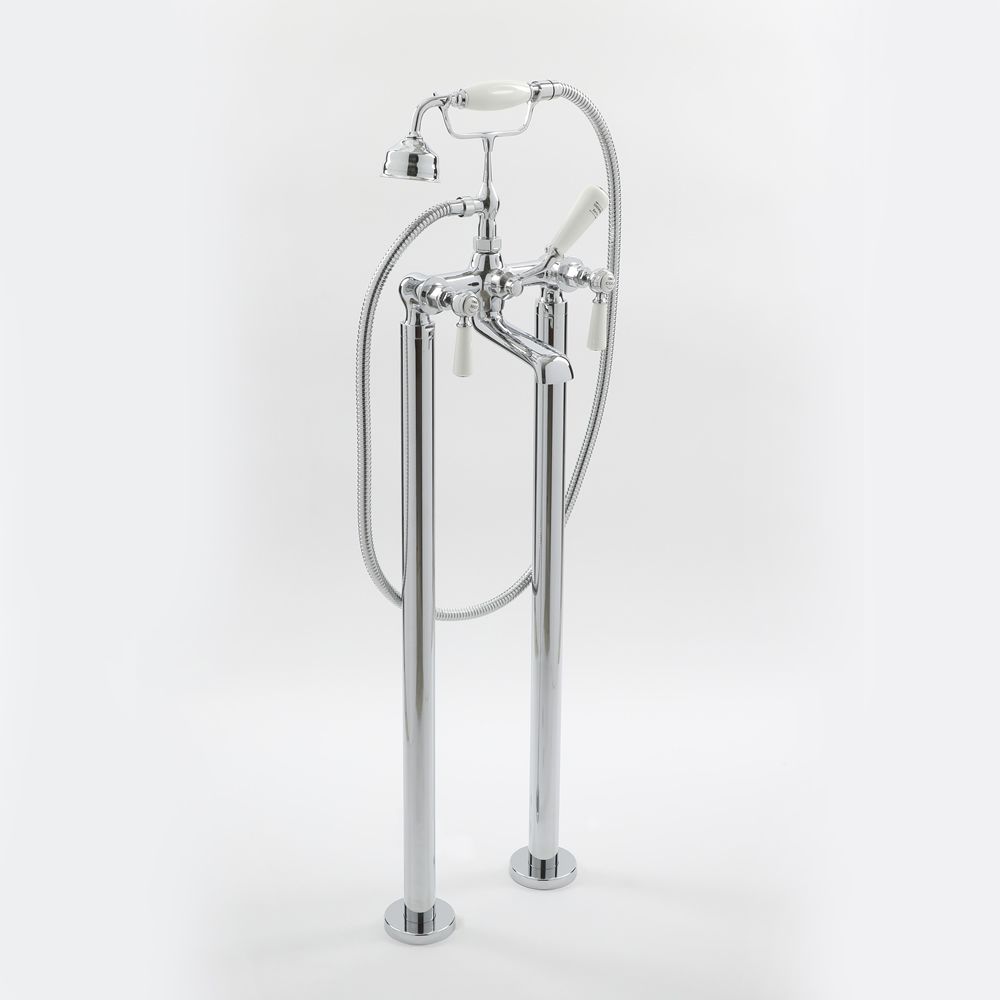 Milano Elizabeth - Traditional Freestanding Lever Bath Shower Mixer Tap with Hand Shower - Chrome and White