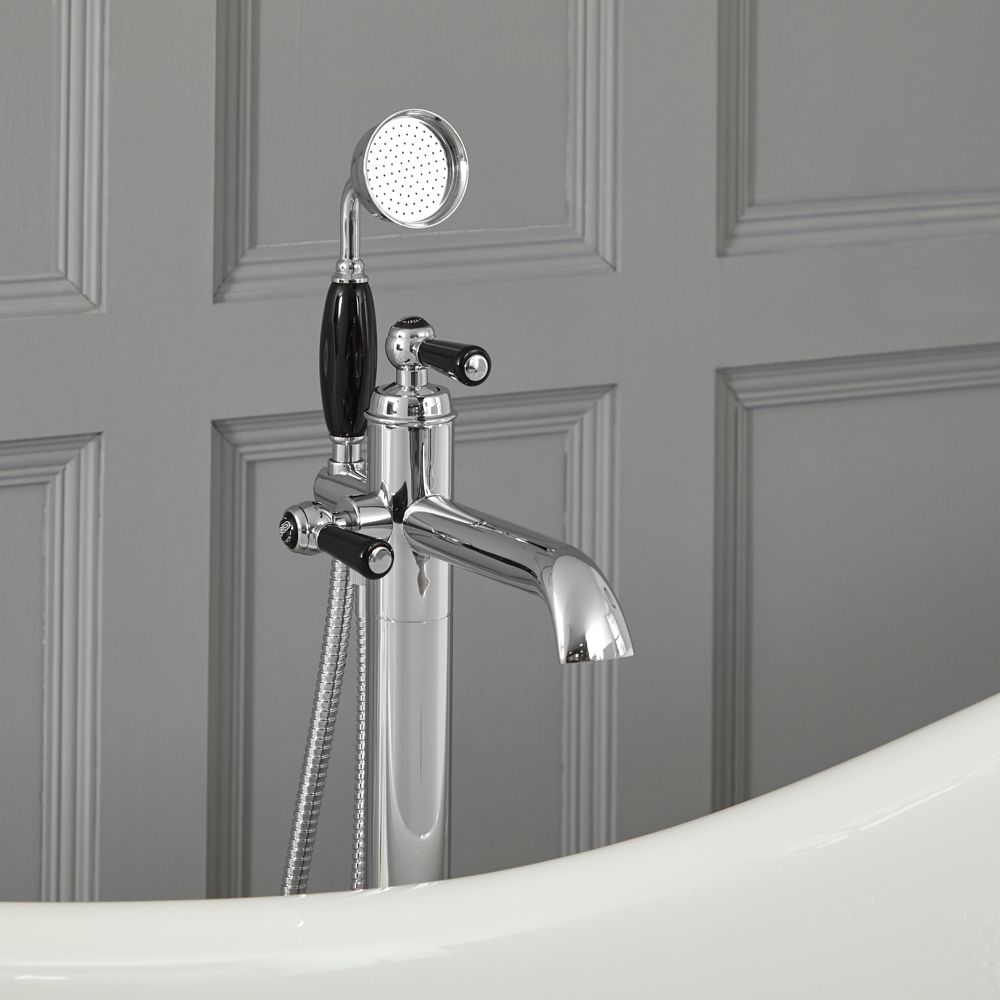 Milano Elizabeth - Traditional Freestanding Mono Bath Shower Mixer Tap with Hand Shower - Chrome and Black