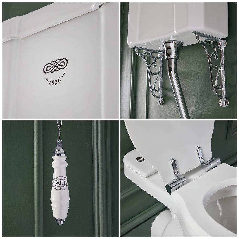 Bring stunning vintage style to your bathroom with the Milano Elizabeth traditional high level toilet, complete with cistern, flush kit and soft close seat.
