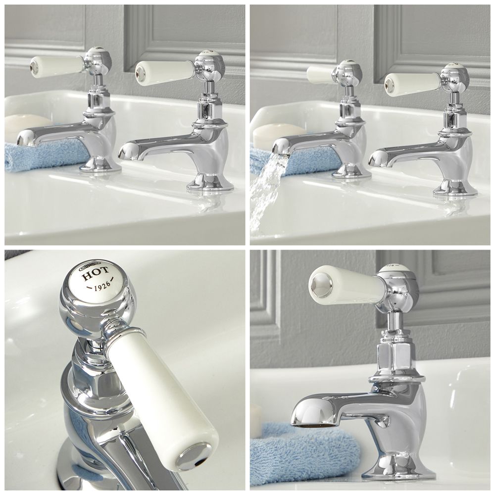 Crafted from solid brass for a luxury feel and guaranteed durability, these hand basin taps feature stylish ceramic lever handles that provide effortless flow control and a hard-wearing chrome finish that seamlessly blends in with any bathroom décor.