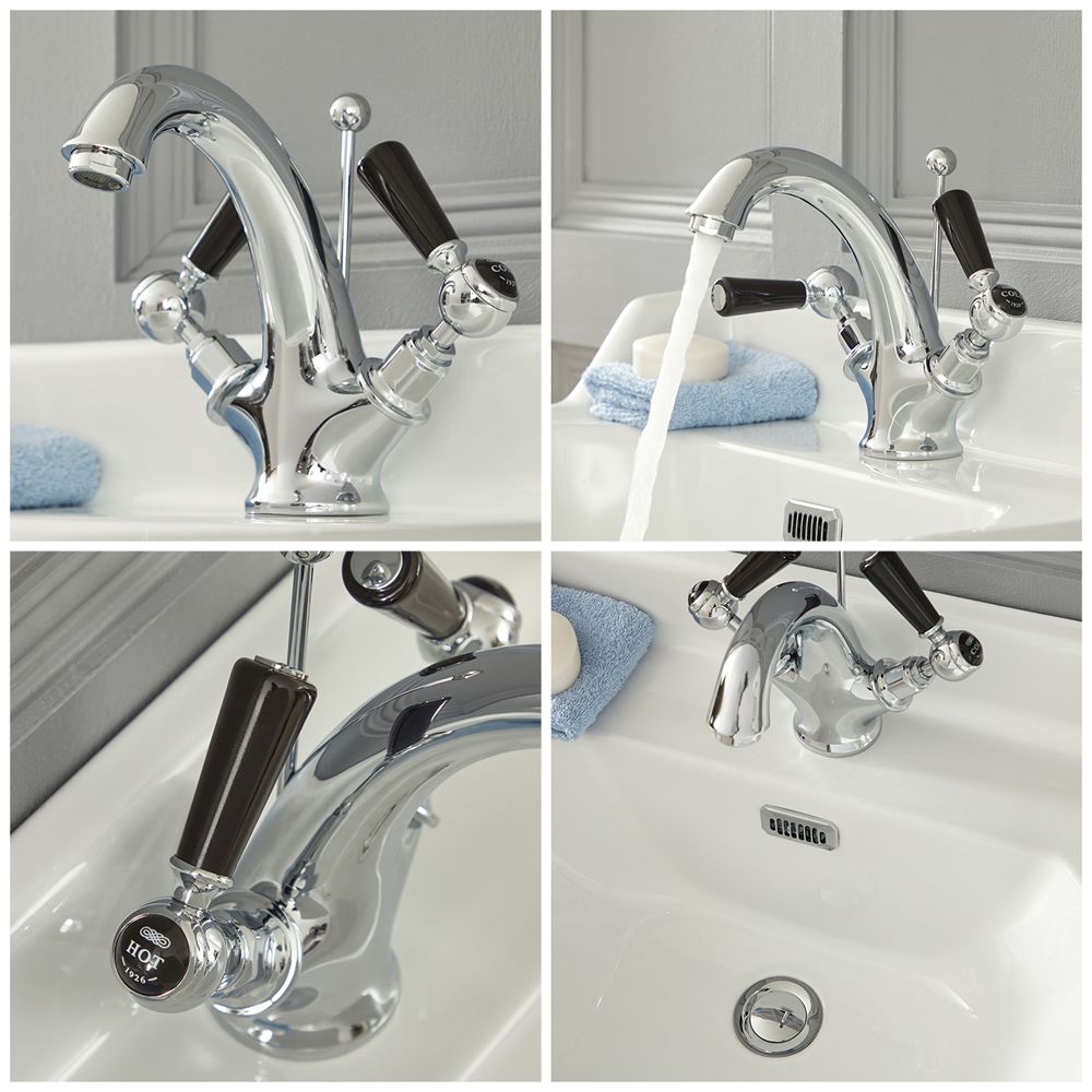 Milano Elizabeth - Traditional Lever Mono Basin Mixer Tap - Chrome and Black